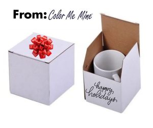 Purchase a Color Me Mine Gift Card valued at $50 or more and receive a FREE mug—beautifully boxed and bowed, ready to gift alongside your card!
